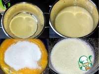 Кус-кус насыпала в кастрюлю, налила воду и оставила на два часа. Желтки отделила от белков. В желтки насыпала сахар и взбила. Во взбитые желтки налила кокосовое молоко. |
