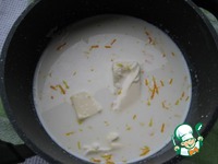 В кастрюлю налить молоко, положить масло, цедру лимона и апельсина натертую на мелкой терке. Поставить на огонь. |