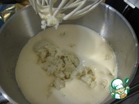Добавить рикотту, перемешать на низких оборотах миксера. Добавить манную кашу, сок апельсина, перемешать. |