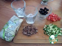 Помидор+заправка, огурец+заправка, маслины В общем салат готов. |