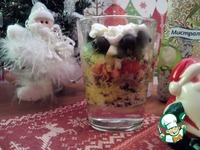 Описание: Красивый и сытный салат, который может заменить второе. Для праздничной подачи я использовала стаканы для виски. Получилось ярко и красиво.