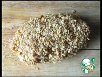 Формируем большую котлету, обваливаем в кукурузной крошке. |