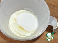Добавляем любой кисло-молочный продукт, у меня варенец, взбиваем. |