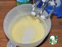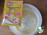 Насыпаем муку с разрыхлителем. У меня разрыхлитель теста с ароматом ванили Dr. Oetker. Перемешиваем до однородного состояния. |