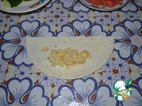 На край лаваша положить столовую ложку сырно-рисовой начинки. |
