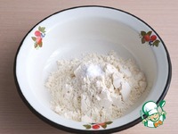 В отдельной миске соединить сухие ингредиенты (муку и разрыхлитель). Сухие ингредиенты перемешать. |