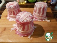 Беконом обкладываем стаканы. Сначала поперек как на фото. |
