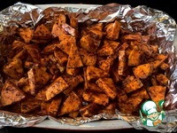 Тщательно все перемешиваем, чтобы специи с маслом покрыли каждый кусочек тыквы |