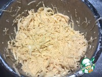 Тщательно перемешиваем руками - следя, чтобы не осталось сухой муки и разделяя лук на отдельные полукольца |