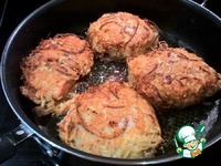 Рецепт этот я взял у замечательного шеф повара Владимира Павлова (из передачи "Небанальная кухня Павлова"). Оригинальный рецепт использует белую рыбу - треску, но я обычно беру лосось. И так и так получается очень вкусно. За счет корочки из картофеля, рыба внутри остается сочной - тут, конечно, главное не пере-готовить и подгадать так, чтобы картофельная панировка дошла до готовности одновременно с готовностью рыбы. Если-же вы чувстуете, что картошка уже готова, а рыба еще нет - можно довести блюдо до готовности, поместив в духовку на несколько минут - как в оригинальном рецепте. Блюдо это очень празднично смотрится и его можно подавать на стол для гостей, а также кушать просто на обед или на ужин :) Я обычно подаю его с соусом тартар и свежими овощами. Иногда, особенно летом, использую соус Дзадзыки - на основе йогурта. За счет того, что панировка достаточно толстая - другого гарнира не требуется, блюдо и так получается довольно сытным.