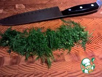 Мелко нарезаем укроп - он очень хорошо сочетается с рыбой. |