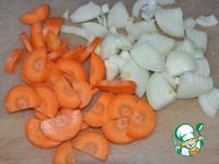 Лук и морковь произвольно режем, но не мелко, так паштет будет сочнее. |