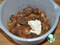 Далее перемешиваем печёнку с овощами и тушим на слабом огне при закрытой крышке 15 минут. |