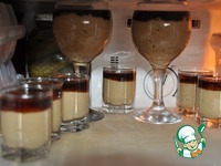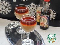 Достаём бокалы (рюмки) с паштетом. Наливаем в них сверху паштета раствор соевого желе. Ставим в холодильник для полного застывания. |