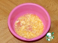 2. В большой миске смешиваем жидкие ингредиенты: яйцо, воду и мягкое сливочное масло. |