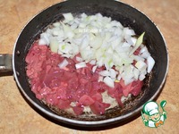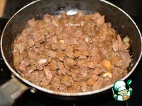 Печень и лук порезать кубиками, выложить на смазанную маслом сковороду. |