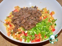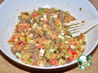 Добавить рубленный лук, печень и чеснок (через чесноко-давилку), перемешать. |