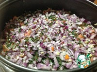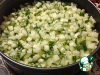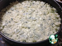 Следующий слой - огурец, нарезанный мелким кубиком. |