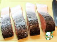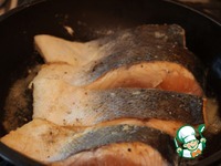 Форель порезать порционными кусками. Натереть солью и перцем. |