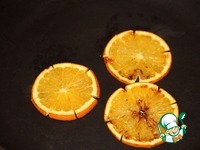 Оставшуюся половинку апельсина порезать колечками, обжарить до румяной корочки на сухой сковороде |