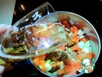 Замаринованную курицу обжариваем на сильном огне с добавлением растительного масла до золотистой корочки. Буквально по 3 минуты с каждой стороны. Не прожариваем ее до полной готовности. |