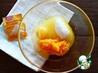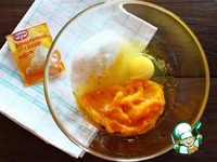 Готовим шоколадное тесто. Во вторую миску с тыквенным пюре добавляем сахар, яйцо, соль, растительное масло, ванильный сахар, перемешиваем до однородности. |