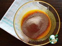 В миску просеиваем муку и какао, добавляем разрыхлитель. Хорошо перемешиваем. |