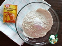 В просеянную муку добавляем разрыхлитель, перемешиваем. |