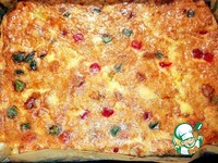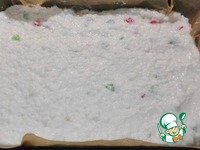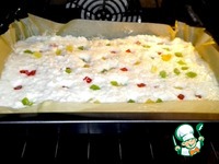 Массу перемешала и положила в форму размером 32 х 24 см, застеленную пергаментной бумагой. Верх разровняла ложкой. |