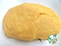 Из остального сделать основу руками в форме (24 см на 17 см) на смазанном пергаменте. Сделать невысокие бортики. Наколоть дно вилкой. |