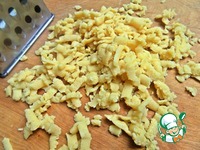Достать кусочек теста из морозилки и натереть на крупной тёрке. |