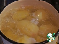 Картофель очистить и целиком сварить в кипящей воде до полуготовности (4-6 минут, в зависимости от размера клубней), слить. Когда картофель слегка остынет, нарезать его на тонкие кружочки. |