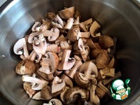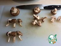 Грибы промываем, нарезаем крупными ломтиками - вдоль ножки. Маленькие грибы разрезаем пополам, средние - на 4 части. Большие - на 6. |
