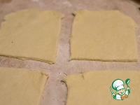 Тесто тонко раскатать, разрезать на маленькие квадратики (у меня получилось 8) |