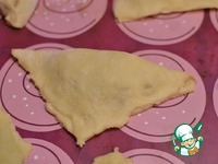 Выложить начинку на квадратики слепить треугольные пирожки |