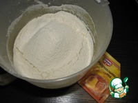 В массу просеять муку с разрыхлителем. Быстро взбить. Я использовала разрыхлитель ТМ Dr. Oetker. Тесто должно свободно стекать с ложки. |
