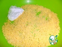 Смешать желтки с масляной смесью. Перемешать все сухие ингредиенты и просеять к общей массе. |