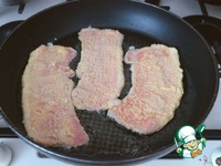 Кусочки свинины поместить в яичный кляр, затем присыпать крупой семолиной. |