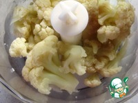 Цветную капусту разобрать на соцветия и отварить до готовности. Откинуть на дуршлаг, дать стечь лишней жидкости и остыть. Выложить в блендер и измельчить. |
