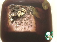 Мясо укладываем в ёмкость (желательно с плотной крышкой), где будем мариновать. Заливаем остывшим маринадом, убираем в холод на сутки. |