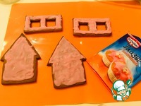 С помощью розовой глазури Dr.Oetker решила сделать мой домик розовым. Окна и двери можно просто нарисовать. Я решила окна "застеклить". |