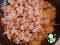 Отвариваем рис, как указанно на пачке. Чистим и натираем морковь, лук режем кубиком. |