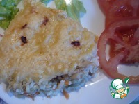 Кладем в форму для запекания слоями 1 слой-тушеные лук и морковь. 2 слой- рыба. |