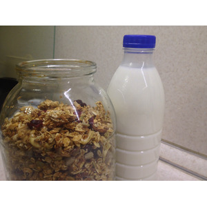 Готовую гранолу лучше всего хранить в банке и употреблять на завтрак с йогуртом или молоком.