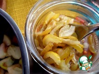Распределить по дну цукаты или любые ягоды из сиропа. Я использовала ломтики цидонии из сиропа, они кисленькие. |