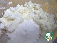 Для начинки творог лучше брать пачечный. Если он крупинками, как у меня, то пробить блендером. У меня обезжиренный. |