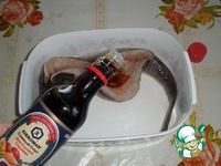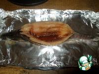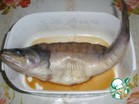 Рыбу кладем в чашку. Добавляем соевый соус ТМ "Kikkoman". Равномерно распределяем снаружи и внутри рыбки. |