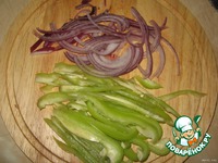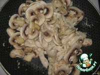 Отставить в сторону на несколько минут. Тем временем, нарезаем шампиньоны (пластинками) и овощи (соломкой). |