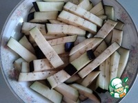 Добавляем морковь. Обжариваем несколько минут, пока баклажаны не начнут становиться коричневыми. Не пережариваем. Плиту выключаем. |