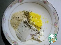 Делаем начинку. Смешаем сыр, сухари, цедру и лимонный сок, травки. Цедру и сок добавьте по вкусу. Мне достаточно от половины лимона. |